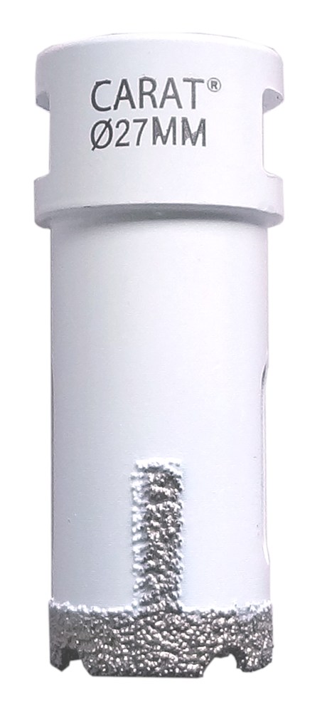 Diamant droogboor 27mm voor gebruik zonder waterkoeling in tegels en natuursteen op haakse slijper.