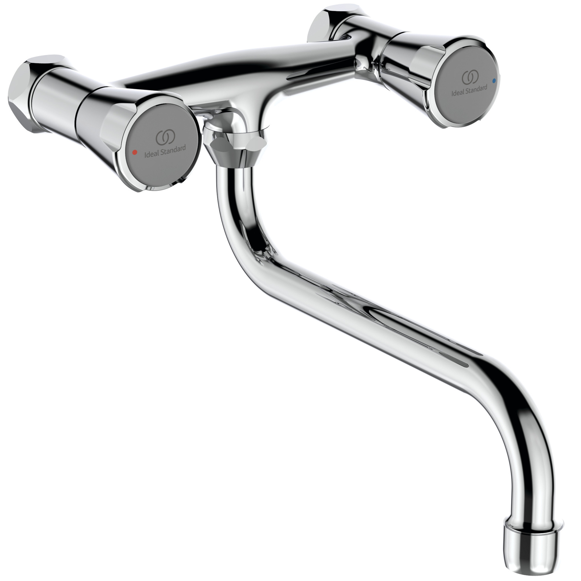 Venlo Nimbus II messing Eco keukenmengkraan (wandmodel) hoh 150 mm met onderuitloop chroom.