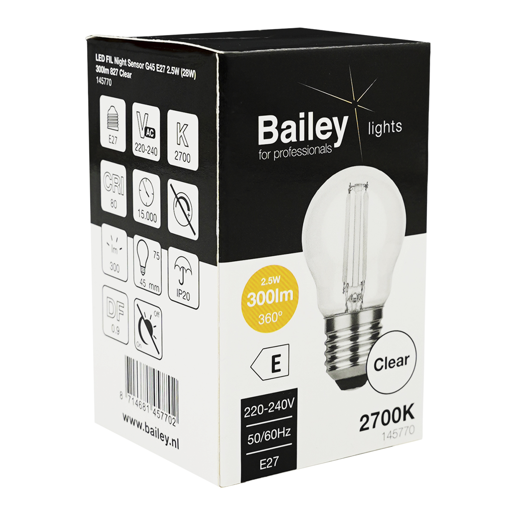 Led filament lamp met een dag/nacht sensor. In de voet van de lamp zit een sensor die reageert op het licht (niet op kunstmatig licht). Bij schemer (< 20 lux) gaat de lamp aan en zodra het licht weer zijn intrede doet gaat de lamp in de slaapstand. Men kan de lamp derhalve gewoon “aan” laten en hoeft nooit meer te denken “had ik de lampen nou aan laten staan”? Hierdoor is deze led lamp nog energiezuiniger en duurzamer dan hij al is.
