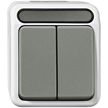 Deze serieschakelaar uit de Aquastar serie van Schneider Electric is slagvast en wordt bevestigd door middel van schroefbevestiging. Deze wisselschakelaar is geschikt om twee lichtpunt vanaf één plek te bedienen. De gehele schakelaar is spuitwater- en stofdicht en daardoor zowel binnen als buiten toepasbaar. De behuizing van deze serieschakelaar is lichtgrijs van kleur en de bedieningstoets heeft een donkergrijze kleur.