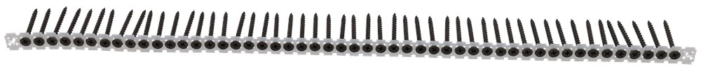 Type C. Grove uitvoering. Zwart gefosfateerd, met normale draad, met scherpe punt en trompetkop met phillips kruis. 50 schroeven op band.