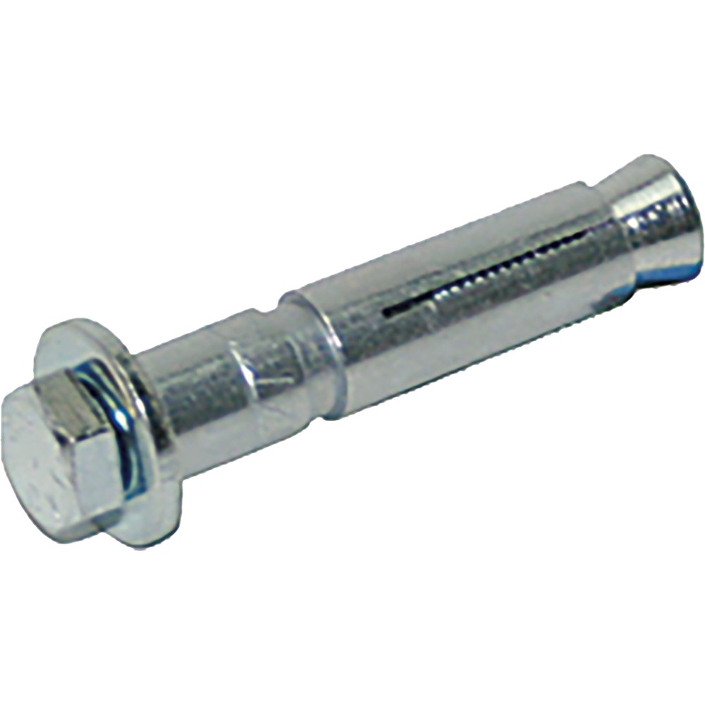 Hulsanker, bestaande uit een moer in een metalen huls met uitzetdelen, geschikt voor bevestiging van ankerwerk met (sleuf)gaten Ø 13mm in (kalkzand)steen of beton.