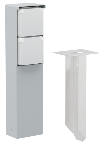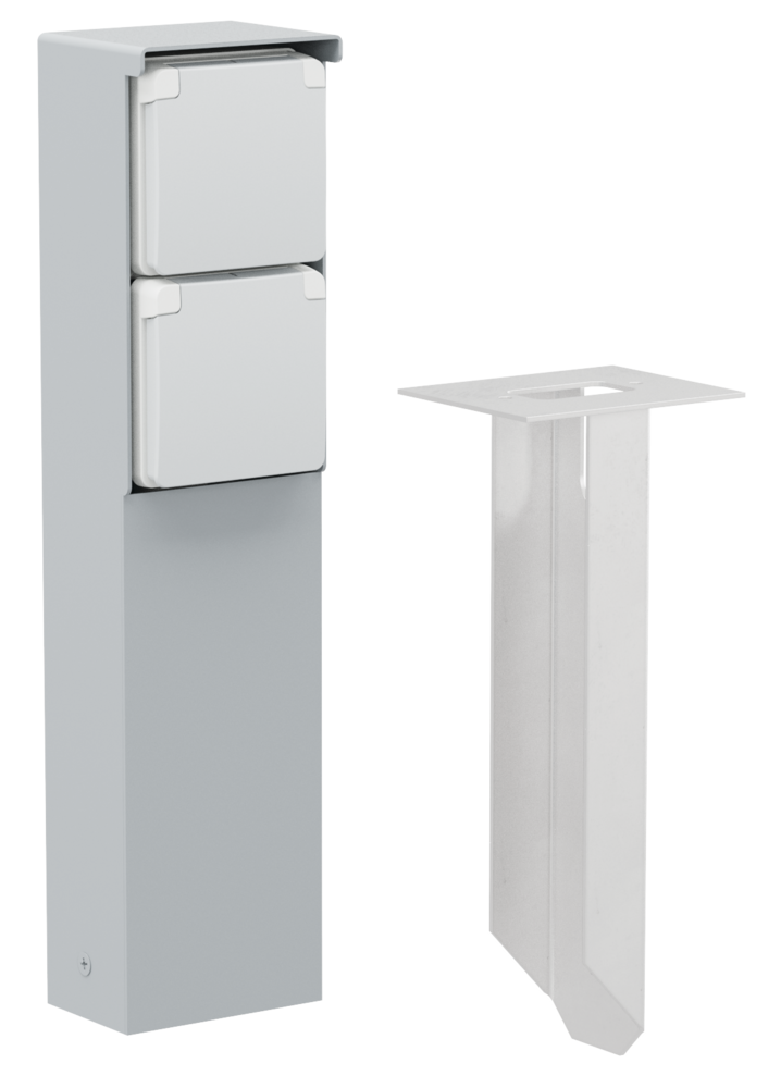 De tuinpaal bevat twee stopcontacten (16 A/250 Vac) met randaarde, beschermingsafsluiters en insteekklemmen. Hij heeft een IP55-beschermingsgraad en een pin die rechtstreeks in de grond moet worden gestopt. Door zijn functionele en knappe design is de tuinpaal perfect voor buiten, zoals op terrassen en in buitenkeukens. Het geheel is bovendien spuitwaterdicht en dus uitermate geschikt voor gebruik in vochtige ruimtes en ammoniakrijke omgevingen.