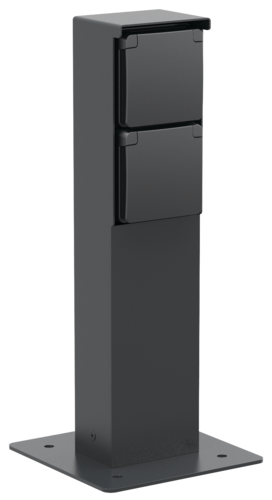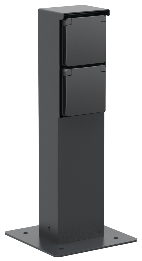 De tuinpaal bevat twee stopcontacten (16 A/250 Vac) met randaarde, beschermingsafsluiters en insteekklemmen. Hij heeft een IP55-beschermingsgraad en is voorzien van een grondplaat om hem op een hard oppervlak te plaatsen. Door zijn functionele en knappe design is de tuinpaal perfect voor buiten, zoals op terrassen en in buitenkeukens. Het geheel is bovendien spuitwaterdicht en dus uitermate geschikt voor gebruik in vochtige ruimtes en veeleisende omgevingen.