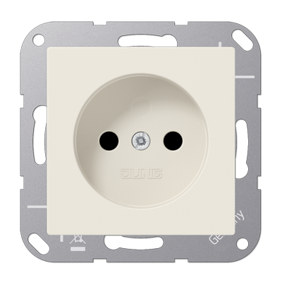 Jung A(S)500 1-voudige wandcontactdoos zonder randaarde, inbouw, duroplast, schroefklem, crèmewit RAL1013.